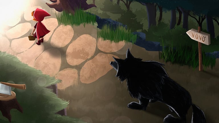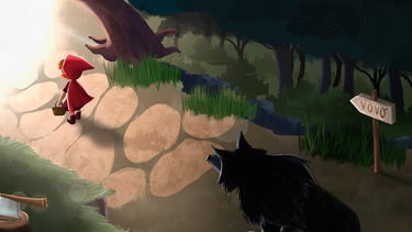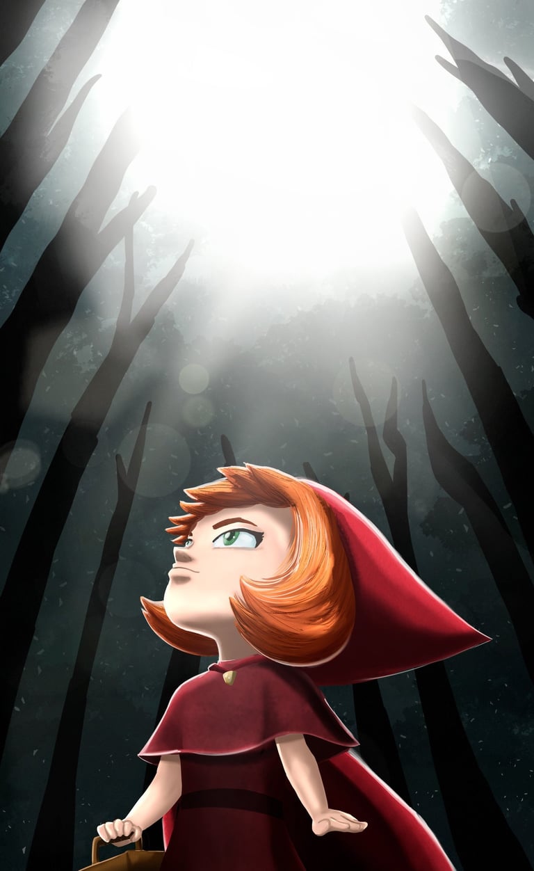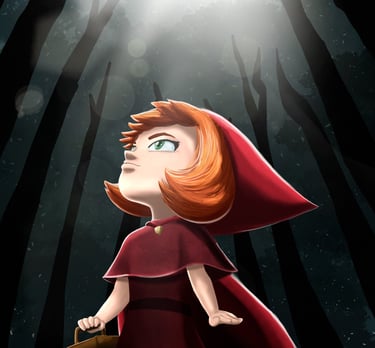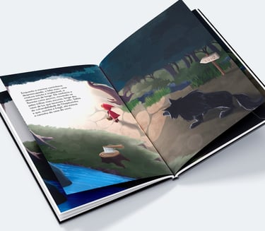 I created an illustration based on the classic children’s book Little Red Riding Hood. The project includes a cover showing the character lost in the forest and a double-page spread in an isometric perspective, depicting the wolf’s pursuit.