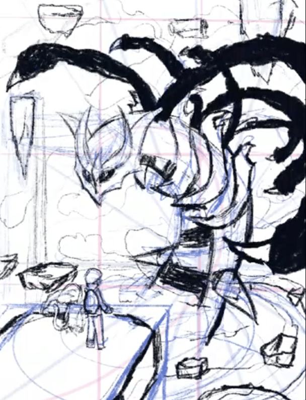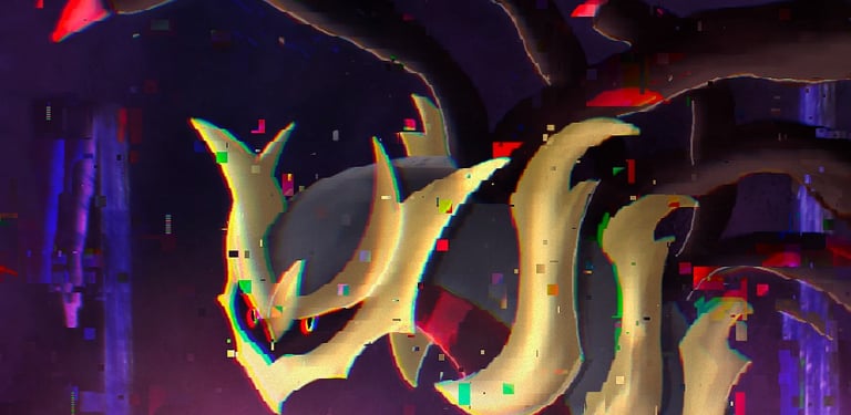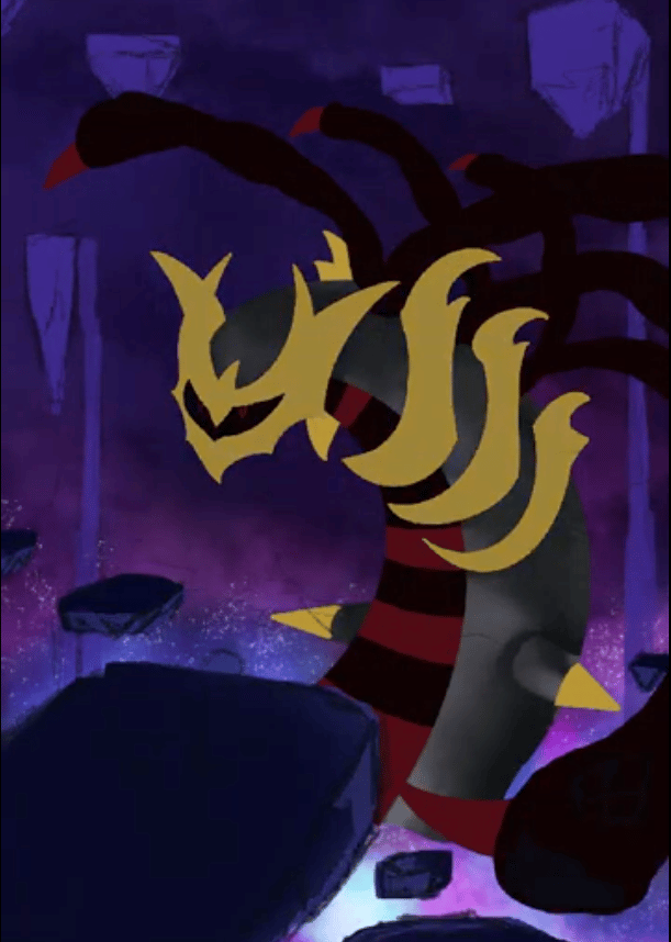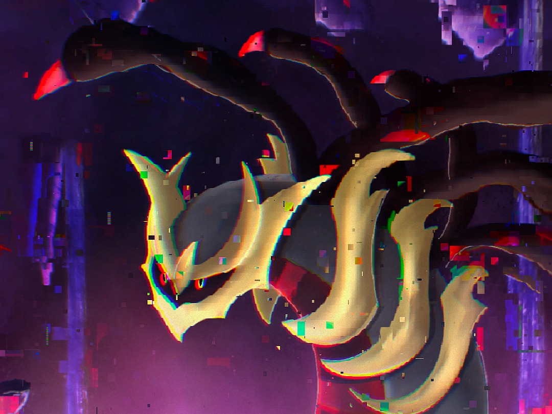 Este trabalho retrata o momento icônico de Pokémon Platinum em que percorremos o Mundo Distorcido e encontramos Giratina, o lendário Pokémon que habita esse lugar enigmático.