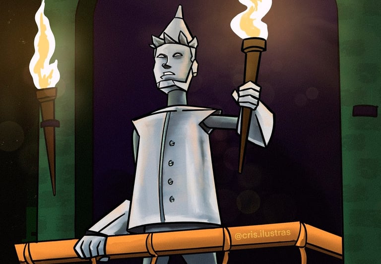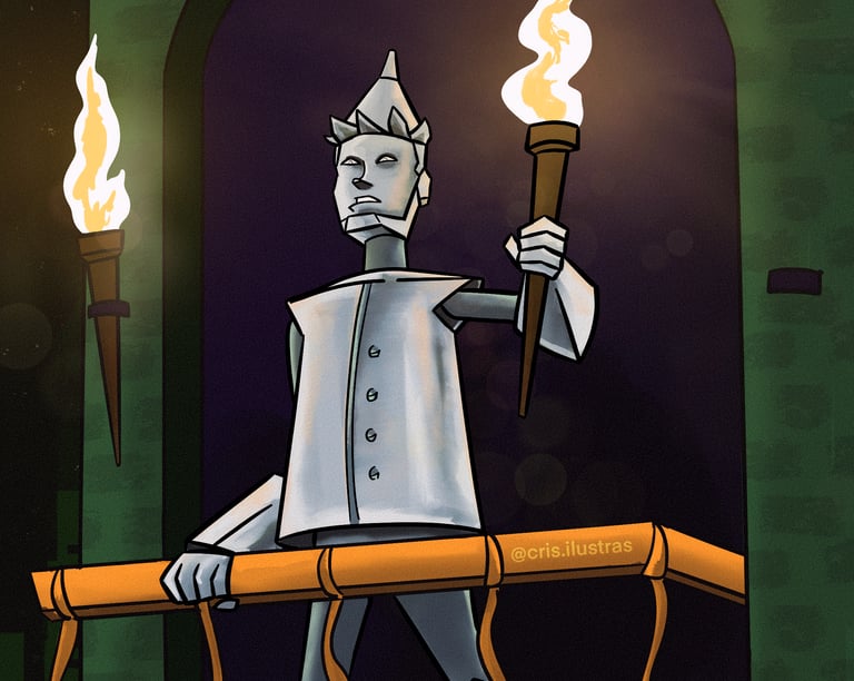 Em 2025, refiz o primeiro desenho digital que fiz na vida: o Homem de Lata na cena “March of the Witch Hunters”, do musical Wicked, agora reinterpretado com o meu estilo atual.